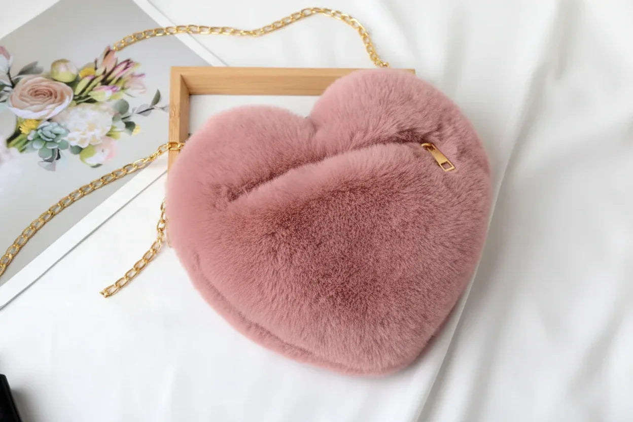 Craquez pour ce sac à bandoulière ultra-doux en forme de cœur ! Avec sa texture peluche moelleuse et sa chaîne élégante, c'est l'accessoire parfait pour ajouter une touche de douceur et de romantisme à votre look. Idéal pour la Saint-Valentin, les sorties entre amies ou comme cadeau adorable.