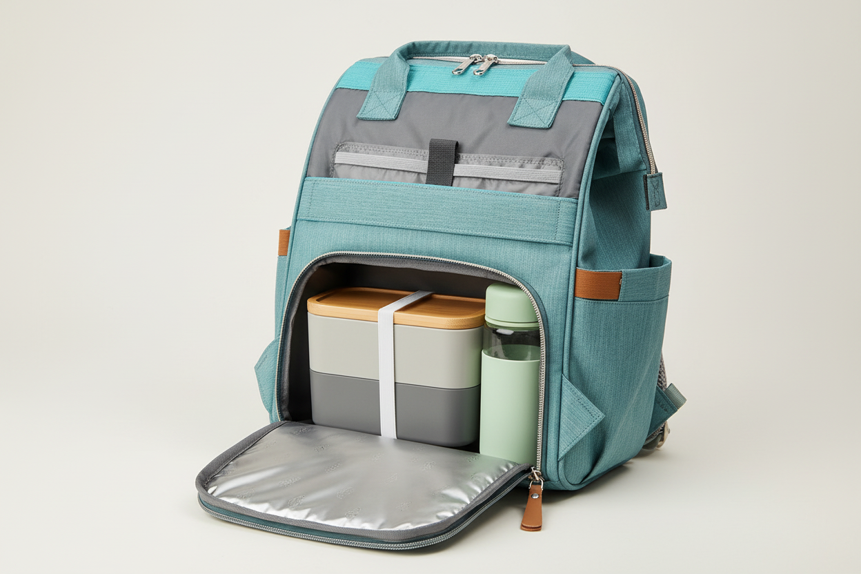 • Espace pour lunch box, bouteilles ou biberons