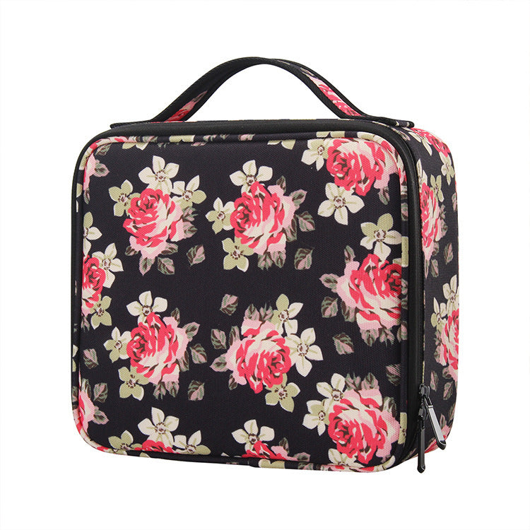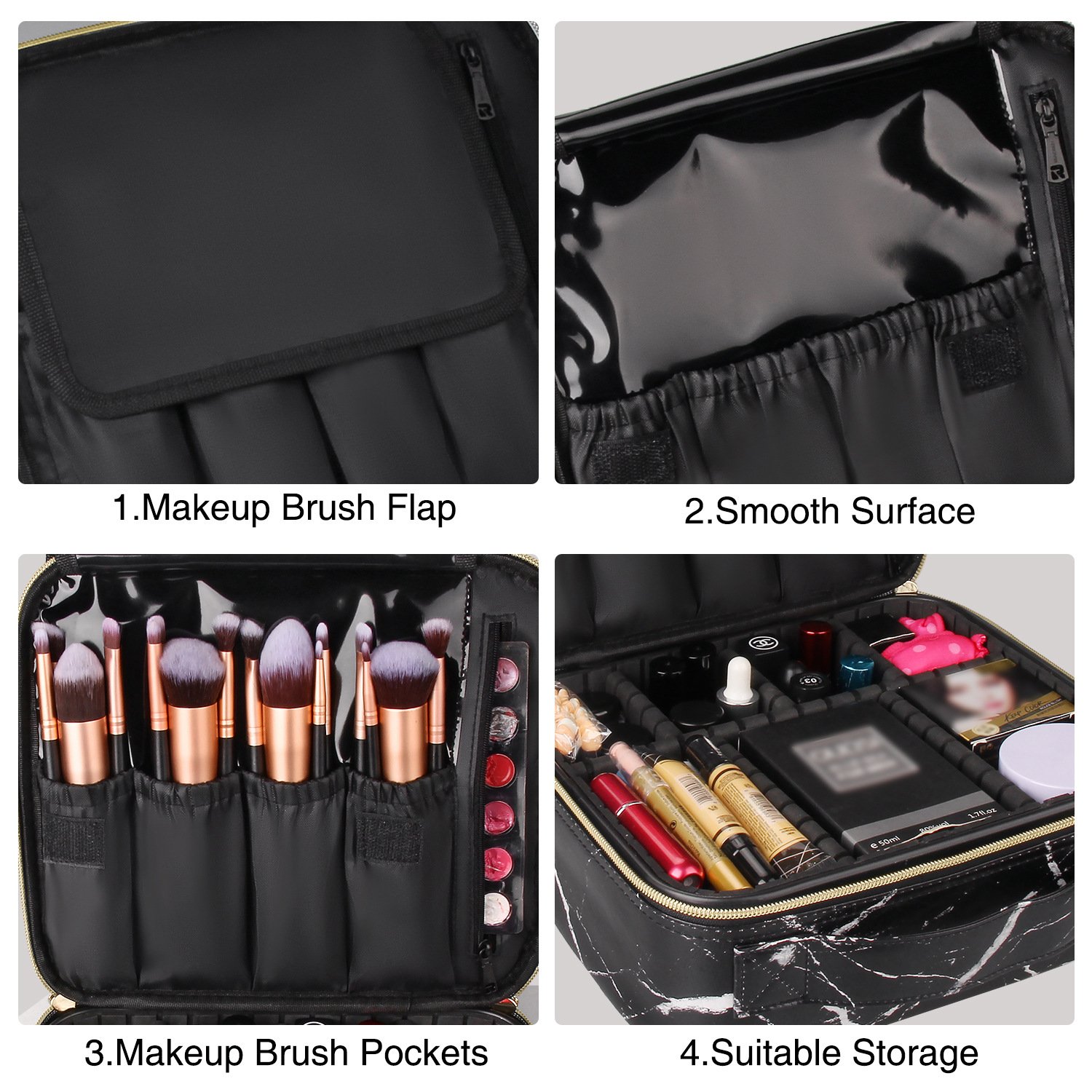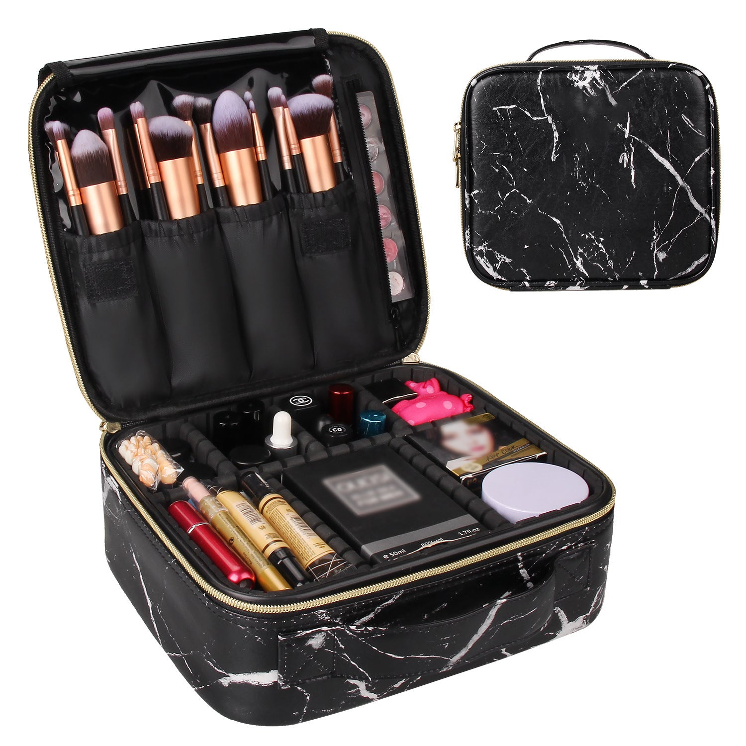 Color: pu marble white partition small small size cosmetic case, pink pu partition small small size cosmetic case, gray partition small small size coverable handle cosmetic case, black gold zipper partition small small size cosmetic case, black partition small small size cosmetic case, rose Red partition small small size cosmetic case, small flower on black background partition small small size, PU marble Black